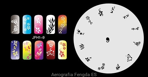 Plantilla para uñas Fengda (nail stencil) es una ayuda muy efectiva para nail art (nail design). La plantilla es lavable y se puede utilizar repetidamente. Tiene aspecto de un círculo con 13 diferentes motivos, los cuales podemos combinar y crear así unas obras de arte verdaderamente espectaculares en las uñas.