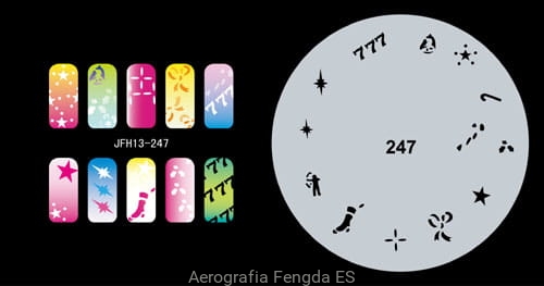 Plantilla para uñas Fengda (nail stencil) es una ayuda muy efectiva para nail art (nail design). La plantilla es lavable y se puede utilizar repetidamente. Tiene aspecto de un círculo con 13 diferentes motivos, los cuales podemos combinar y crear así unas obras de arte verdaderamente espectaculares en las uñas.
