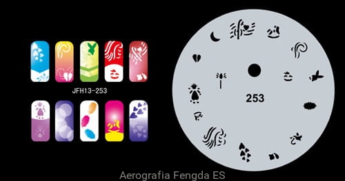 Plantilla para uñas Fengda (nail stencil) es una ayuda muy efectiva para nail art (nail design). La plantilla es lavable y se puede utilizar repetidamente. Tiene aspecto de un círculo con 13 diferentes motivos, los cuales podemos combinar y crear así unas obras de arte verdaderamente espectaculares en las uñas.